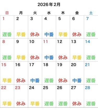 遅番 12:00~ 21:00 |