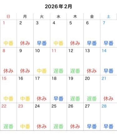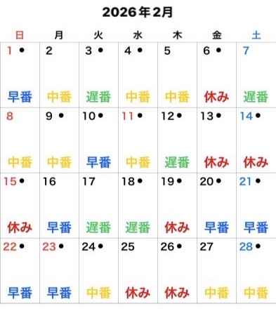 早番 9:00~ 17:45 |
