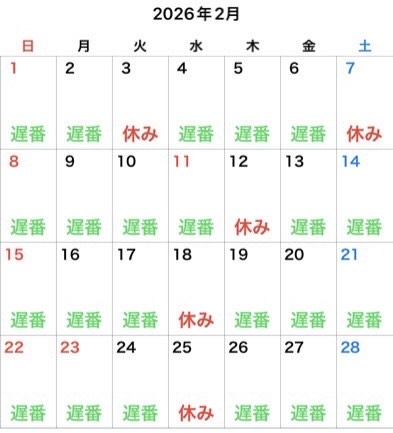 ※高坂は16時までの出勤となっております